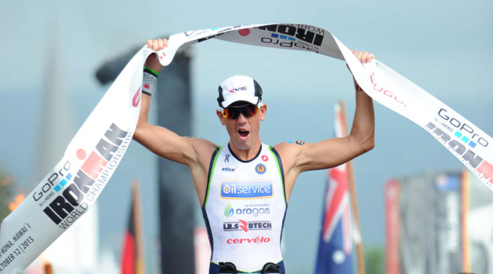 Belgian Frederik Van Lierde wins the 2014 Ironman World Championship in Kona, Hawaii in a cloud racer.